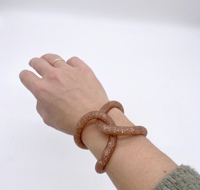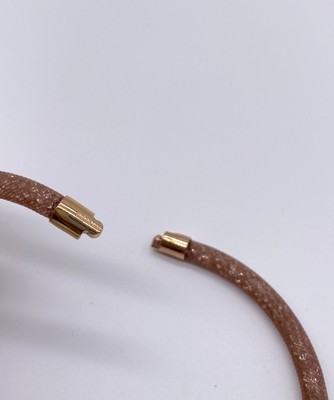 BRACELETmodèle Stardust double tour, composé d'un tube en nylon résille contenant des cristaux beige, fermoir à emboîtement magnétique. Signé.