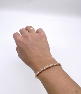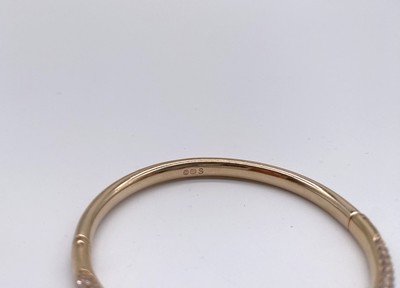 BRACELET jonc modèle Sublima en métal plaqué or rosé et pavage de cristaux sur le dessus, fermoir à rabat. Signé.