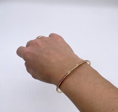BRACELETjonc en métal plaqué or rosé et pavage de cristaux. Signé.