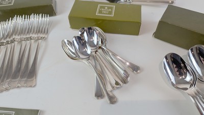 PARTIE DE MENAGERE modèle America, comprenant : 39 pièces, soit : 12 couverts à entremet, 12 petites cuillères, une pince à sucre, une louche, une pelle à tarte.