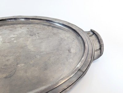GRAND PLATEAU OVALE en métal argenté à deux anses, bordure cannelée.
