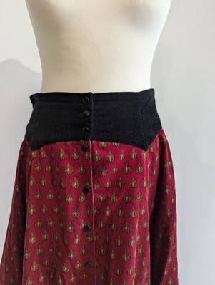 JUPE en velours noir et velours rouge à décor imprimé provençal. Taille 42