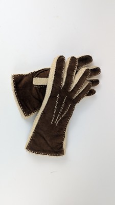 PAIRE DE GANTS en velours marron avec de fourrure synthétique à surpiqûres.