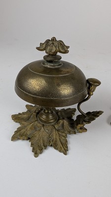 DEUX SONNETTES DE TABLE en bronze à base feuillagée.