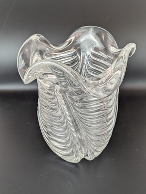VASE en cristal moulé soufflé à décor ondulant de vagues.