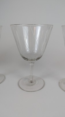 SIX VERRES A EAU à pied en verre taillé à losanges
