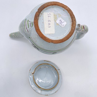 VERSEUSE couverte, en faïence à décor vert et manganèse de tiges fleuries, peignés sur l'anse et le déversoir.
