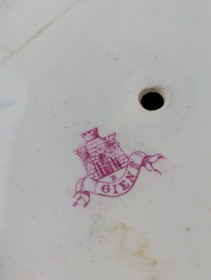 JOINT : SARREGUEMINES, GRAND-PLAT creux pouvant former présentoir au même modèle. fin du XIXe siècle. (Diam. présentoir : 37...