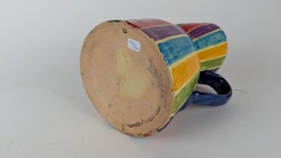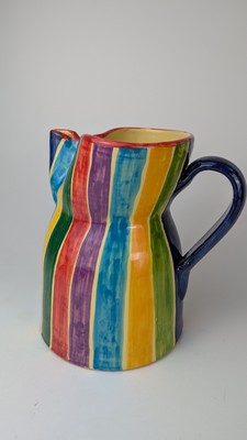 PICHET en céramique émaillée polychrome à motifs de rayures sur la panse.