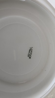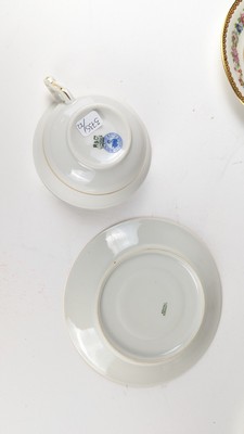 SERVICE A THE en porcelaine blanche à décor de guirlandes florales et liseré doré, comprenant : cinq tasses et sous-tasses