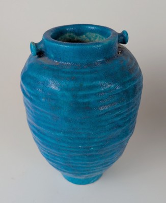 VASE tourné en grès émaillé bleu turquoise, col à deux quillons (l'un recollé). Signé sous la base.