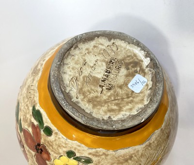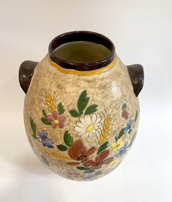 VASE ovoïde en céramique émaillée polychrome à décor sur fond crème de motifs floraux.