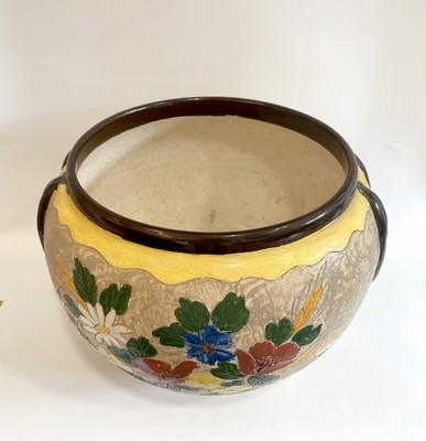 CACHE-POT en céramique émaillé polychrome à décor de fleurs des champs.