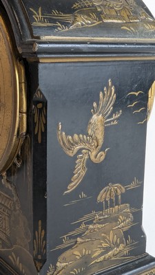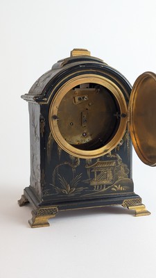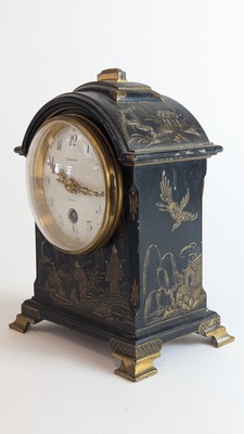 PETITE PENDULE borne à décor en verni européen à l'imitation de la laque de Chine, doré sur fond noir.