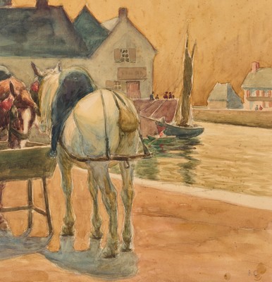 Aquarelle et crayon monogrammé RC en bas à droite