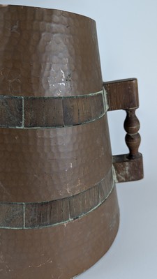 HERRADE ou FERRETA en bois gainé de cuivre martelé à deux anses en bois tourné.