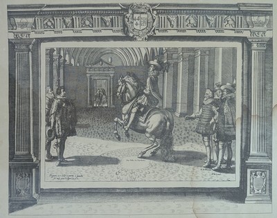 [ÉQUITATION] - D'après Antoine de PLUVINEL (1555-1620) pour l'ouvrage « L'instruction du Roy (Louis XIII) en l'exercice de monter à cheval "paru en 1625.