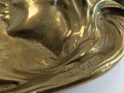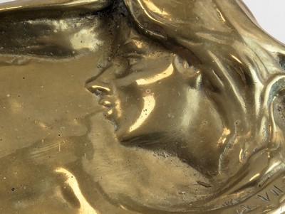 VIDE-POCHE Art Nouveau en bronze, à décor de profil de femme à la longue chevelure.