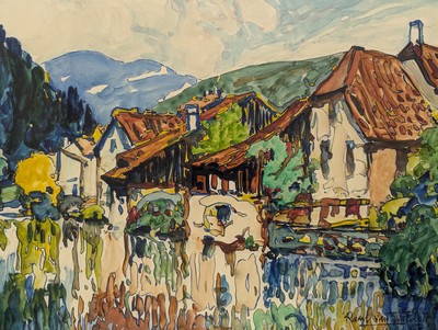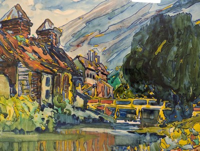 Deux aquarelles formant pendants signées en bas à droite et titrées en bas à gauche.