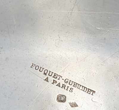 PLAT ovale en argent (950) à contours filetés et deux chiffres CT en relief