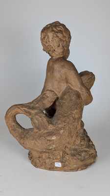 Épreuve en terre cuite moulée et modelée signée à l’arrière.