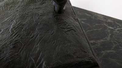 Cachet de fondeur "FBL" à l'avant de la terrasse en cursives.