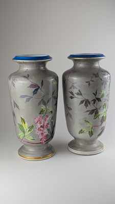 PAIRE DE VASES de forme balustre en porcelaine émaillée polychrome à décor d'oiseau dans des branchages fleuris.
