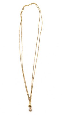 CHAÎNE DE MONTRE en or (750) à double rang se terminant par un poing fermé retenant une bélière sertie de petites perles en chute.