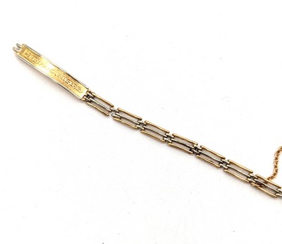 GOURMETTE en or (750) deux tons gravée "Bertrand Faugère" et gravée "Préfecture Marne" au revers.