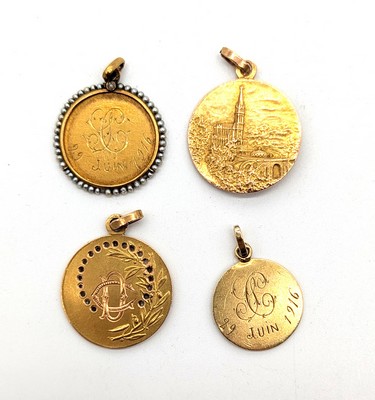 QUATRE MÉDAILLES de Baptême en or jaune (750) aux profils de Vierge.