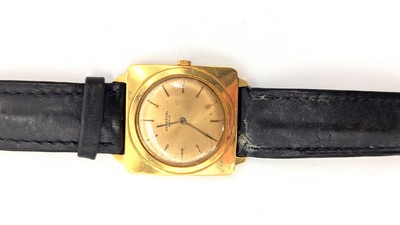 MONTRE bracelet de dame en or (750), à cadran plat carré, mouvement quartz à mouvement quartz, signé.