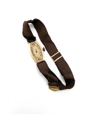 BOÎTIER DE MONTRE de forme tonneau en or jaune (750) et son fermoir pliant.