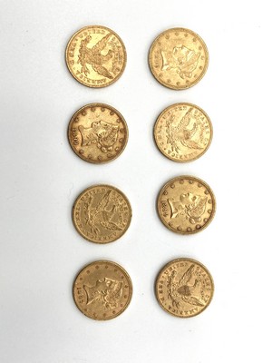 8 PIECES de 10 dollars or, Liberty, 1895 (2), 1897 et 1899 (5).