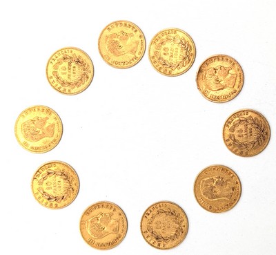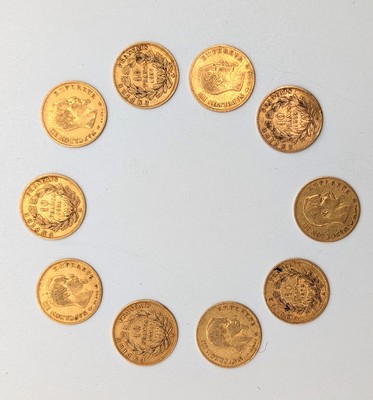 10 pièces de 10 F or, tête nue, Paris, 1856 à 1860.