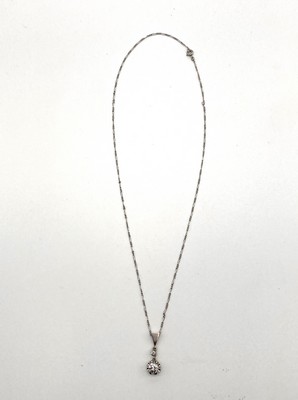 COLLIER avec CHAÎNE et PENDENTIF en or (750) orné d'un diamant demi-taille de 0,75 ct environ, retenu par un plus petit.