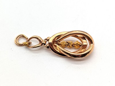 PENDENTIF en or jaune (750) de format ovale sertie de quatre perles.