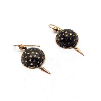 PAIRE DE PENDANTS D'OREILLES en or (585) composés chacun d'une demi-sphère de jais incrusté d'étoiles d'or. Epoque Victorienne, XIXe siècle
