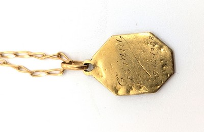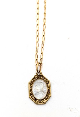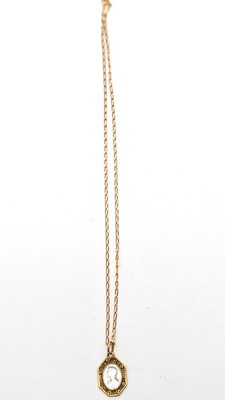 PENDENTIF Art Déco en or (750) incrusté d'un médaillon en nacre sculptée au profil d'une femme. Le revers gravé "Josiane" et daté "9-12-1928".