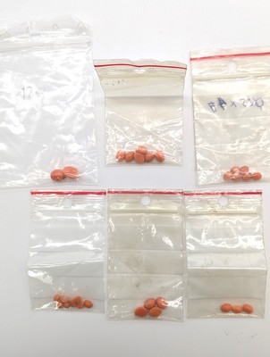 PENDENTIF au modèle des clips d'oreilles en or (750) et cabochons de corail et diamants.