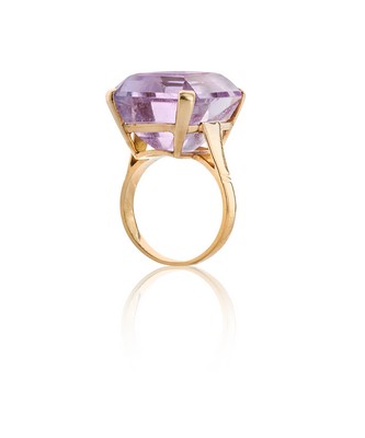 BAGUE en or (750) ornée d'une améthyste taille rectangle.