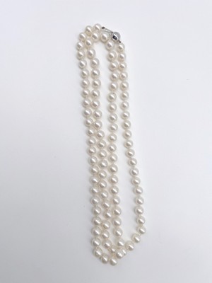 COLLIER DE PERLES DE CULTURE, de type sautoir, à fermoir en or gris (750).