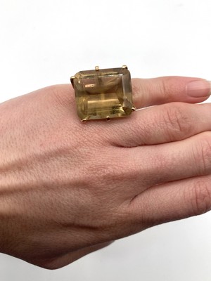 BAGUE en or (750) ornée d'une importante citrine (23 x 20 x 11 mm)