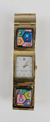 MONTRE de dame en métal doré et émail, mouvement quartz (non garanti).