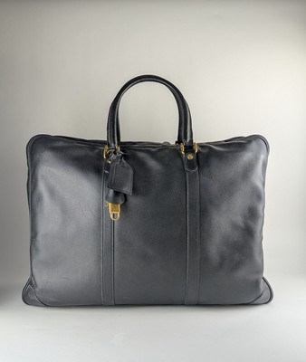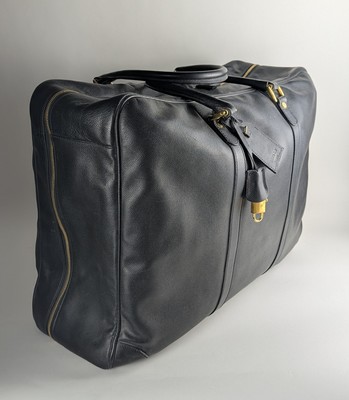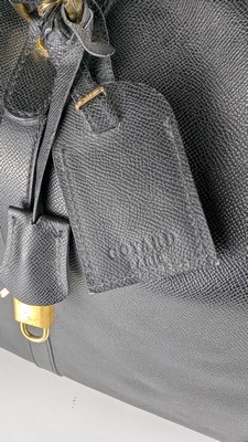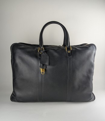 SAC DE VOYAGE Cabine, rectangulaire, souple en toile grainée noire, à deux anses porté épaule, intérieur en toile beige avec poche et sangles.