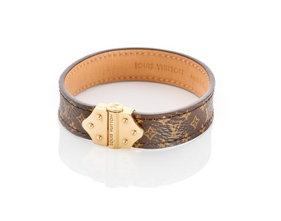 BRACELET en cuir monogram. Fermoir en métal doré. Signé et numéroté. Taille 19.