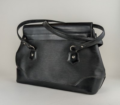 SAC A MAIN en cuir box et épi noir, à large rabat à boucle à pressoir et quincaillerie argentée, deux grandes anses porté épaule.