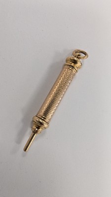 PORTE-MINE en métal plaqué or à fût rétractable. Bélière mobile.