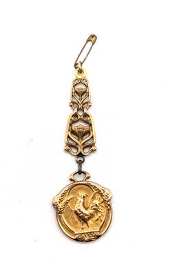 MEDAILLE en métal doré à décor d’un gaulois et une chaîne en métal doré ajourée.