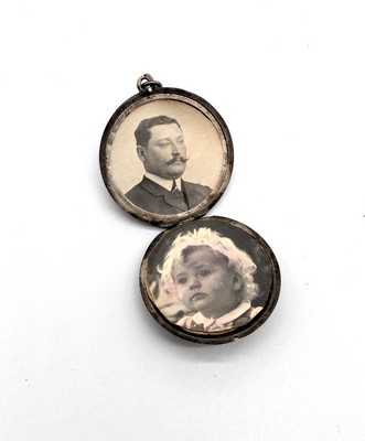 PENDENTIF porte souvenirs en argent (800) émaillé noir à décor central d'un diamant taille brillant dans un quartefeuille stylisé.