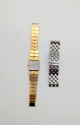MONTRE bracelet de dame en métal doré et laqué noir, mouvement quartz (non garanti),...